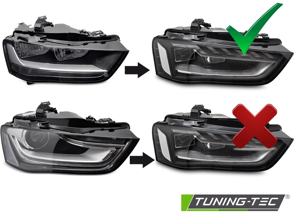 A lámpa a gyári halogén fényszóróval szerelt Audi A4 B8 modellek cseréjére készült.